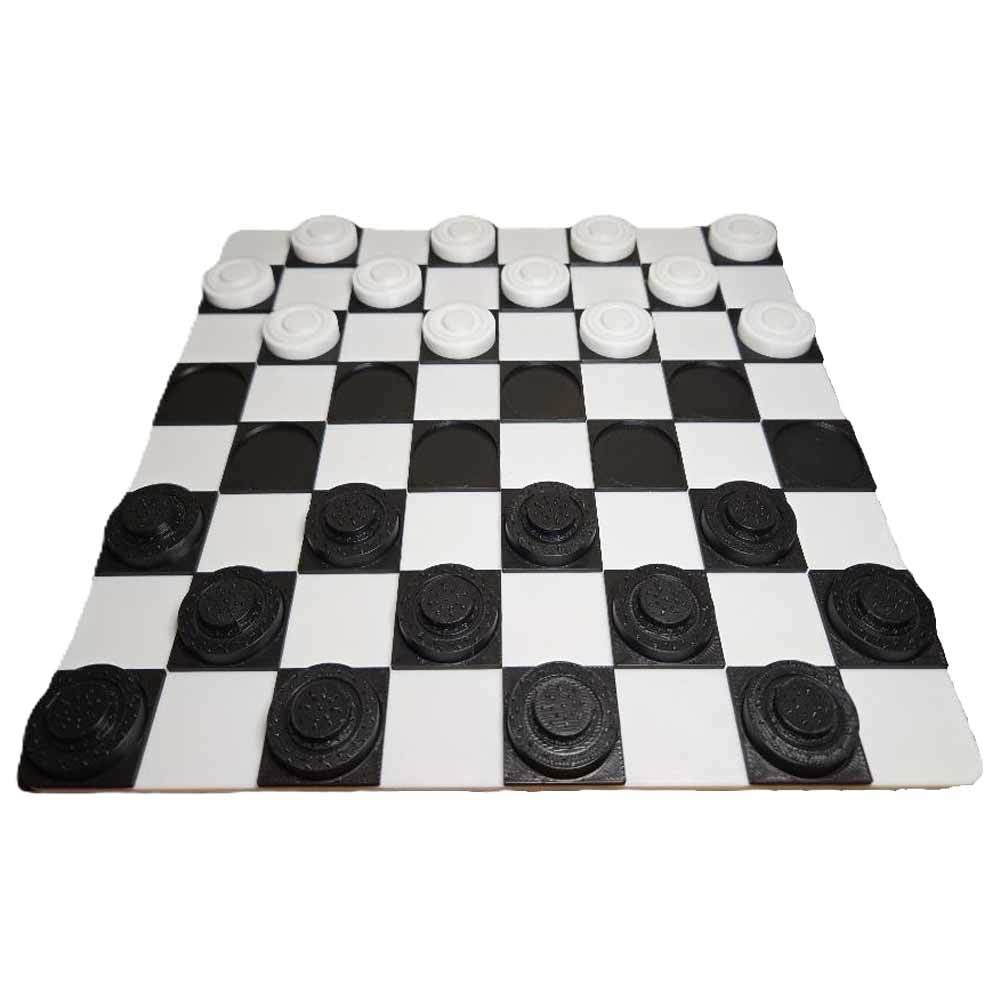 Includes- 8 x 8in square 3-D checkerboard with 64 tactile tiles, 24 checker pieces -almost 1 inch in diameter-